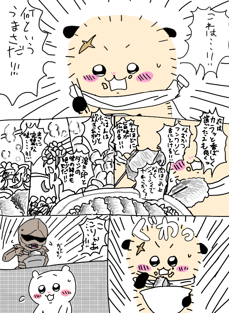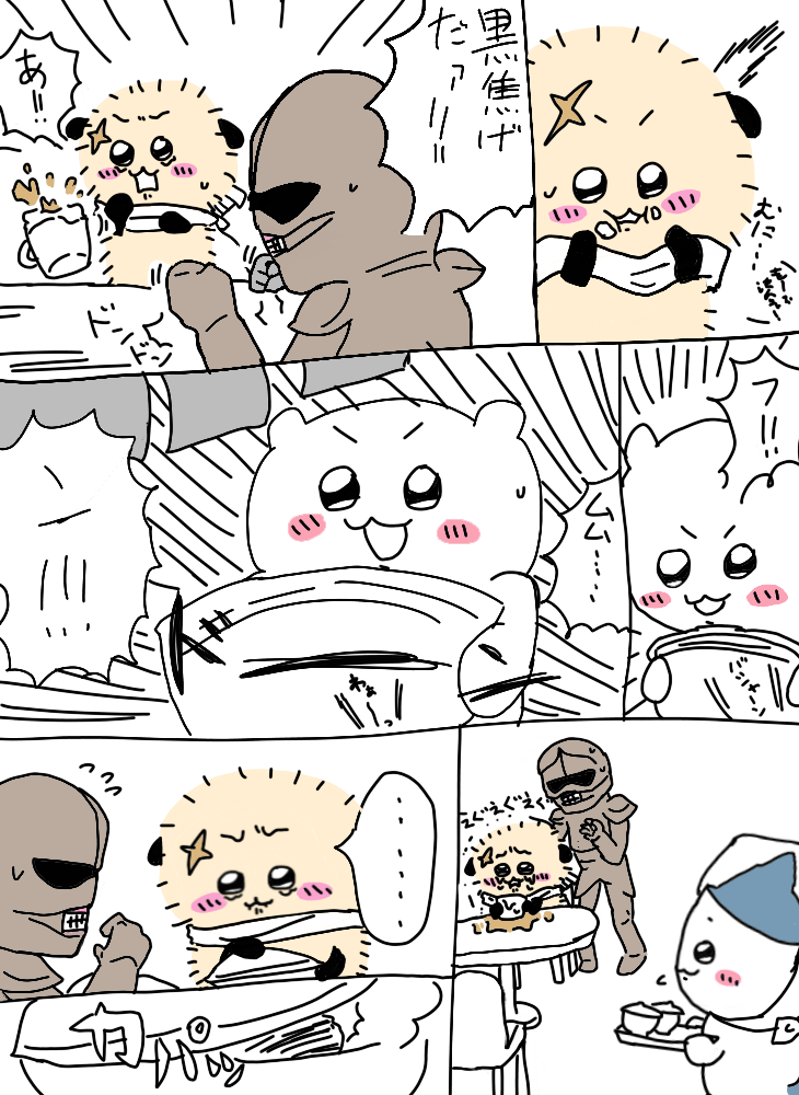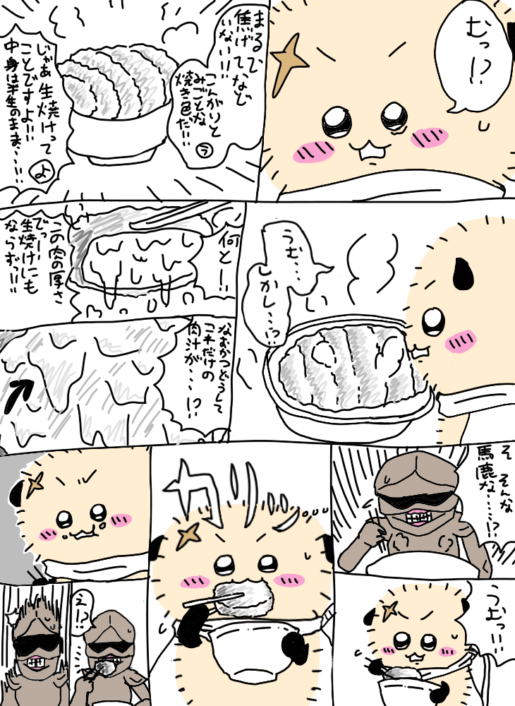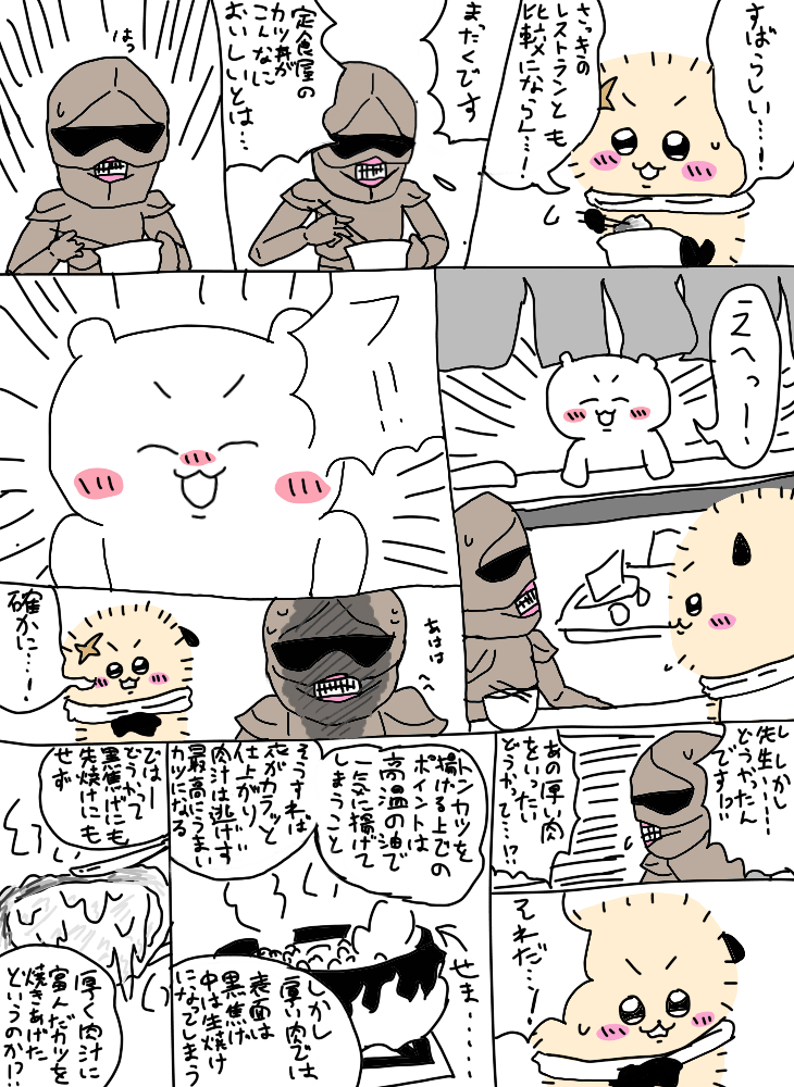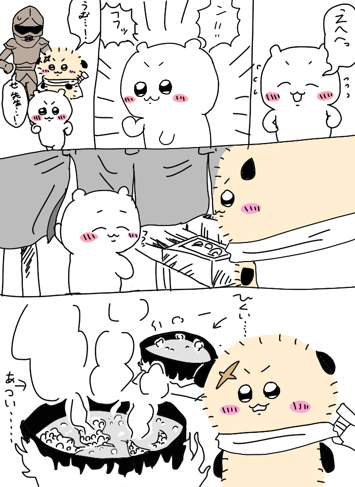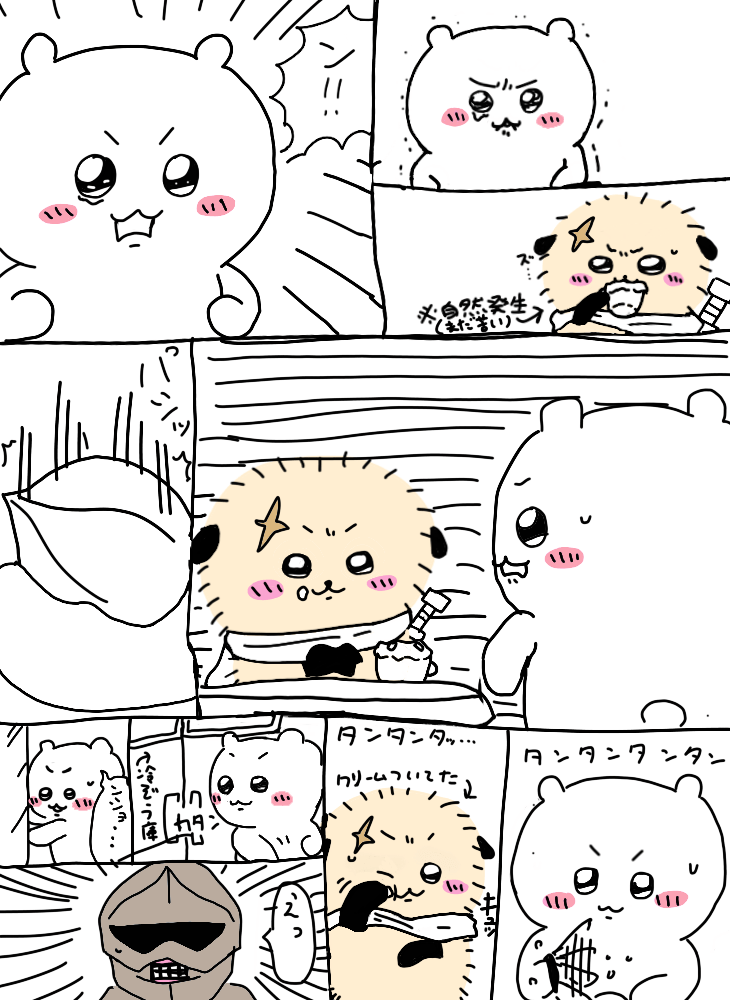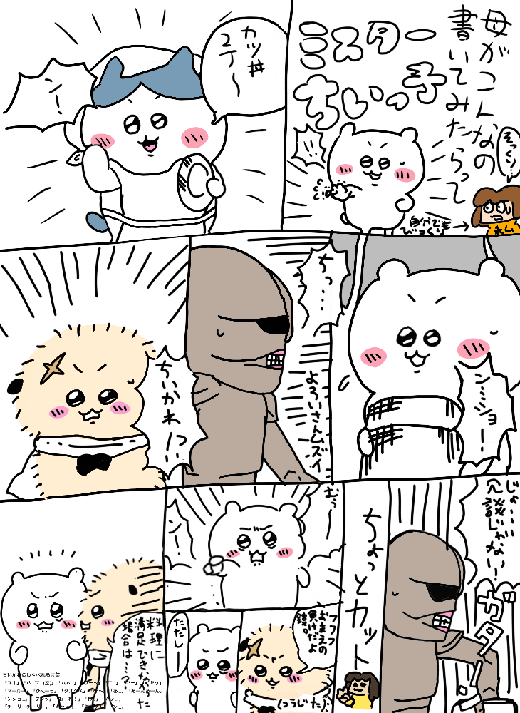 さく2が書いた、ミスター味っ子とちいかわのファンアートです。